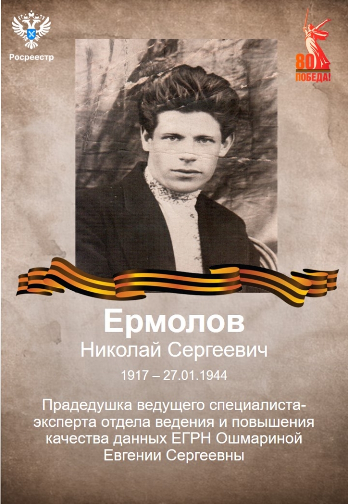 Дорогие друзья! Управление Росреестра по Ярославской области присоединилось к Всероссийской акции «Марафон Памяти», приуроченной к 80-летию Великой Победы и направленной на сохранение исторической памяти о героях нашей страны. Мы будем рассказывать вам о родственниках сотрудников Ярославского Росреестра, которые участвовали в Великой Отечественной войне.