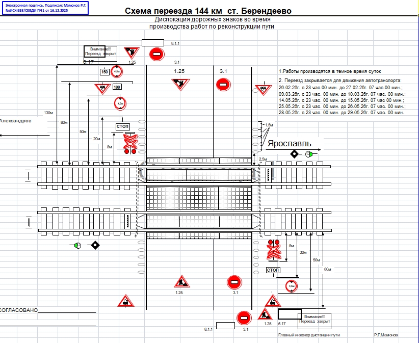 РЖД информирует о закрытии ж/д переезда в Берендеево 26 февраля, 9 марта, 14, 25 и 28 мая