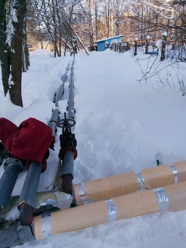 В настоящее время идут работы по восстановлению тепловой изоляции на наружных тепловых сетях в микрорайоне Чкаловский у дома №42. Этим занимается ООО ГКС. В морозную зиму этим трубам важна качественная теплоизоляция, благодаря которой повышается их энергоэффективность и снижаются потери в системе теплоснабжения.