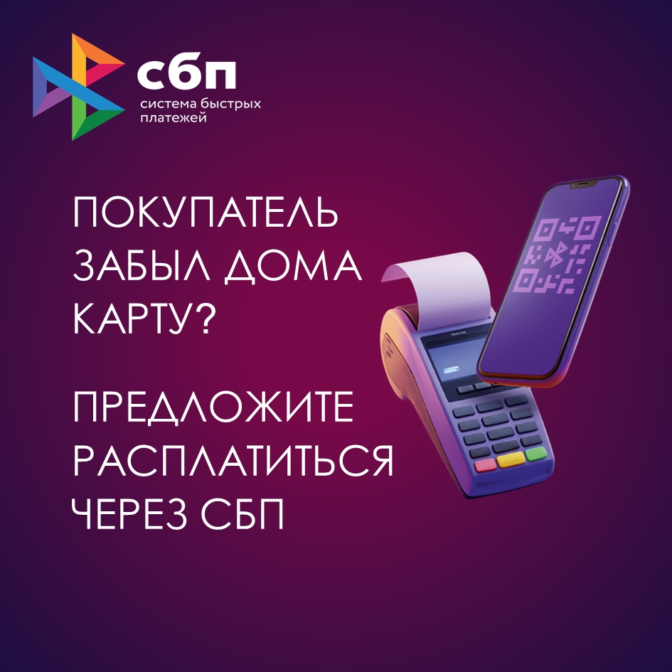 Всё больше покупателей оценивают удобство и скорость оплаты через Систему быстрых платежей (СБП). Если ваш клиент забыл карту дома или хочет расплатиться с телефона, предложите ему современный и выгодный для бизнеса способ.