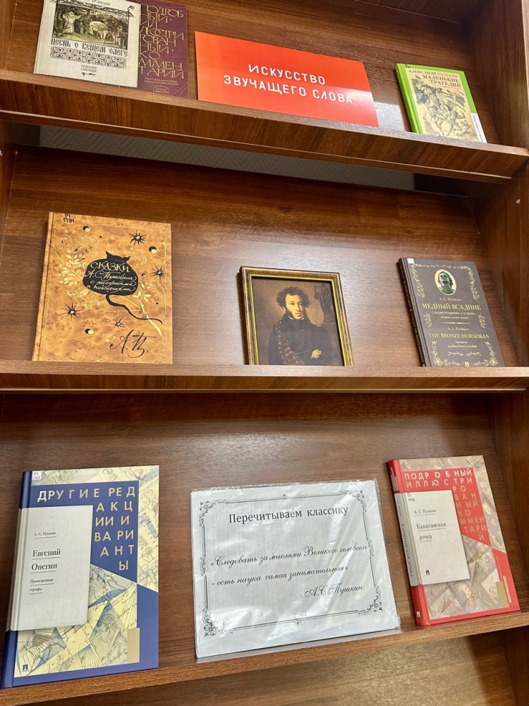 На выставке сотрудников ведомства ждали бессмертные творения А. С. Пушкина – «Евгений Онегин», «Пиковая дама», «Борис Годунов», «Дубровский», «Капитанская дочка», «Руслан и Людмила», сборники стихотворений, поэмы, сказки. Воспоминания современников — родных, наставников и товарищей по лицею, знакомых, друзей, оставивших заметный след в жизни и творчестве великого поэта. Представлены исследования пушкинистов жизни и творчества Гения Земли Русской, в частности, посвященные последнему году жизни поэта, трагической дуэли Пушкина с Дантесом на Черной речке.
