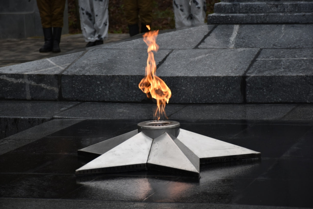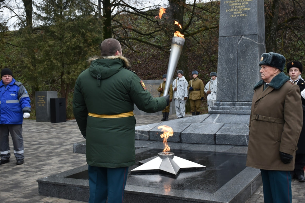 У мемориала наших земляков, погибших в Великой Отечественной войне, зажжен огонь Вечной памяти